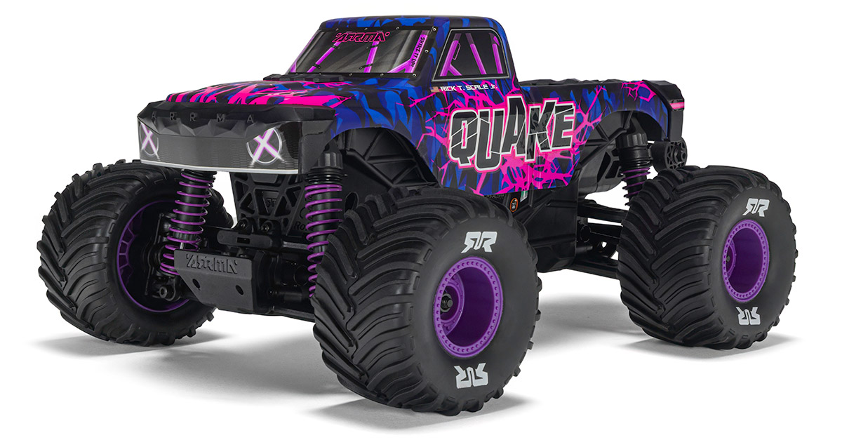 THE LITTLE BROTHERthat punches above it's weightARA3537T3 QUAKE 223S BLX Monster Truck (Purple)ARA2137T3 QUAKE GROM Monster Truck (Purple)1/10th Scale1/16th Scale -